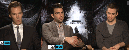 Há mais entrevistas em vídeo da MTV e do Access Hollywood com três atores do elenco de Além da Escuridão. Benedict Cumberbatch e Zachary Quinto revelam alguns detalhes importantes sobre o vilão, enquanto Chris Pine dá algumas dicas do relacionamento de Kirk e Carol Marcus (interpretado por Alice Eve). Spoilers.
