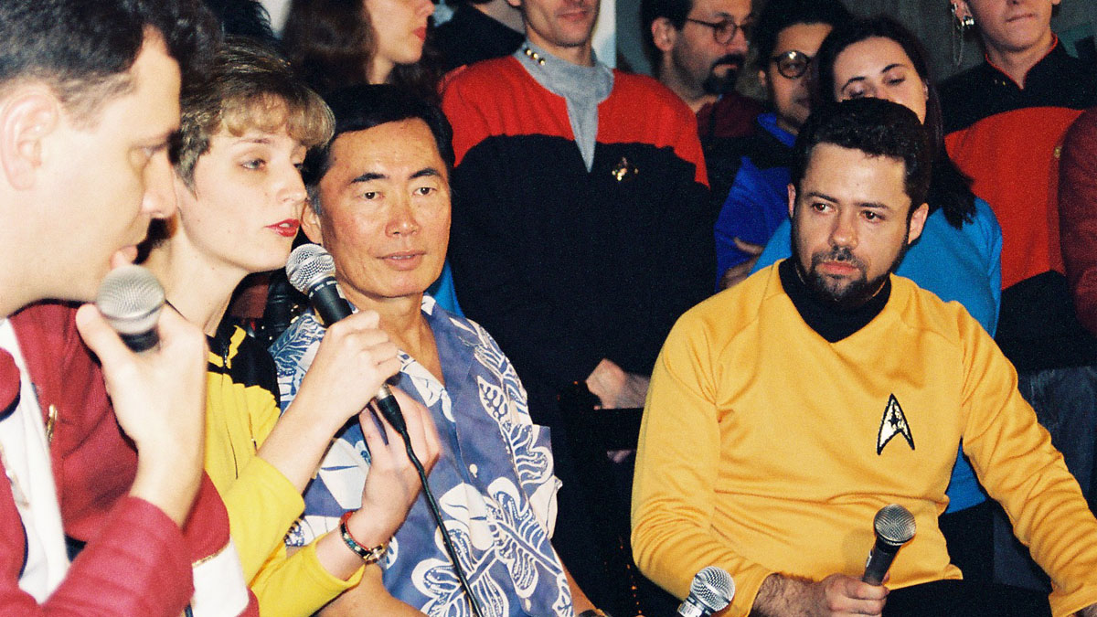 E eles conseguiram. Com muita audácia, um grupo de empresários foi reunido para ajudar a financiar a vinda de alguém relevante. O anúncio foi feito ainda no primeiro semestre daquele ano via os informativos que o clube mandava pelo correio aos seus sócios, pela revista Diário de Bordo (que também era da Frota), e pela famosa linha telefônica Trekline (mais tarde renomeada como Frotaline), para onde se ligava a fim de se ouvir notícias quentinhas sobre a franquia. O nome era George Takei.