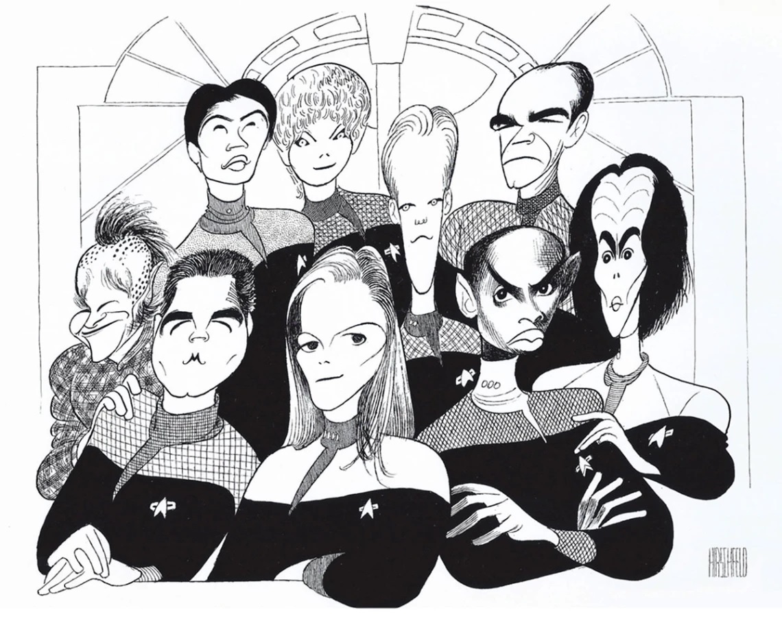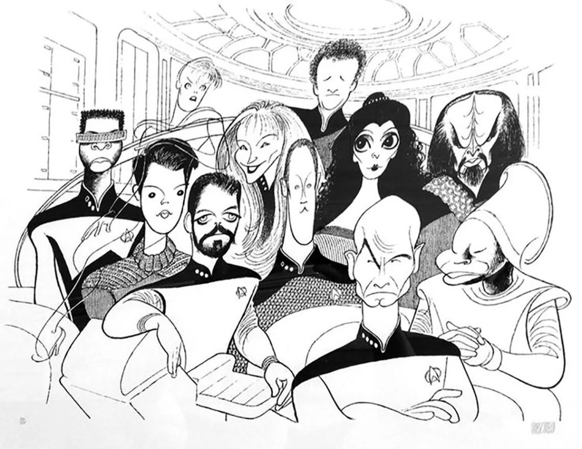 Vinte e cinco anos depois, Brent Spiner encomendou ao artista uma caricatura do elenco da Nova Geração. Dois anos depois, Hirschfeld revisitou a Série Clássica ao retratar a tripulação da Enterprise original. A dedicação do artista à Star Trek continuou nos anos seguintes e Deep Space Nine e Voyager foram retratadas por sua pena.